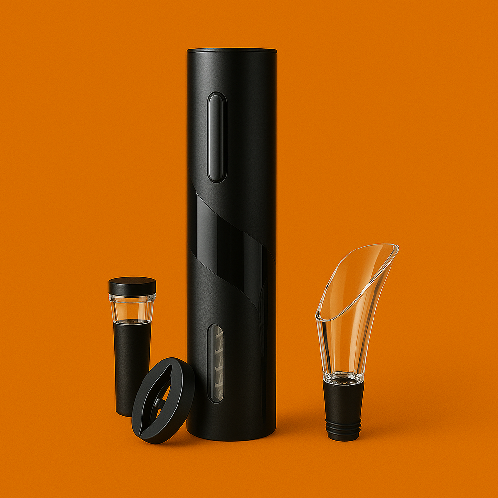 Surpreenda-se com a eficiência e a sofisticação do Abridor de Vinho Elétrico — o toque final que faltava na sua adega.